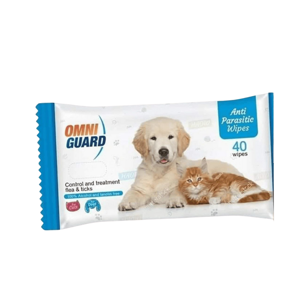 الكلمات المفتاحية : أومني جارد, Omni Guard, مناديل مضادة للطفيليات, Anti Parasitic Wipes, مناديل براغيث وقراد, علاج البراغيث, علاج القراد, خالي من الكحول, قطط, كلاب, 40 wipes, مصر.