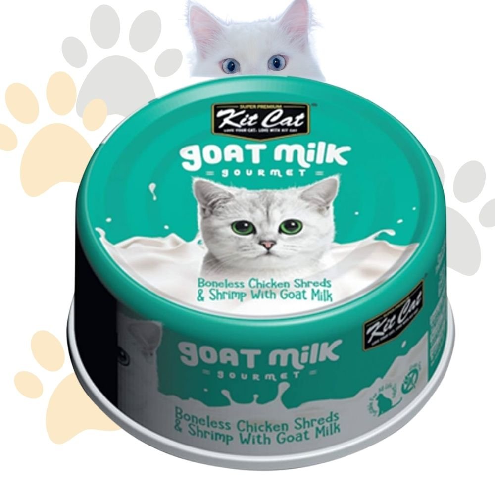 كيت كات جورميه بحليب الماعز – قطع دجاج وجمبري | Kit Cat Goat Milk Gourmet – Boneless Chicken Shreds & Shrimp – أكل قطط بحليب الماعز والجمبري، سهل الهضم وخالي من الحبوب في مصر